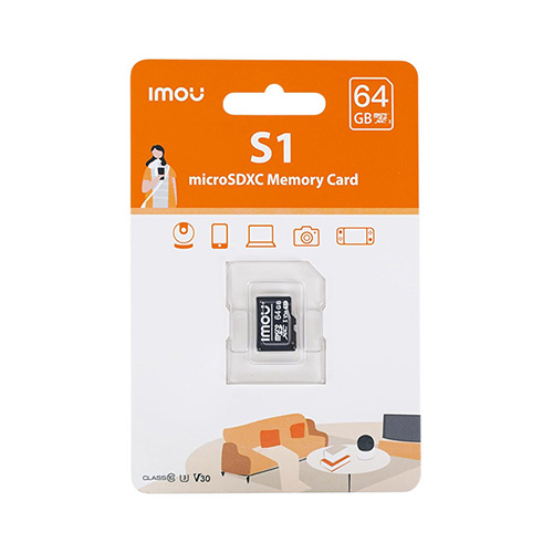 کارت حافظه microSD آیمو Imou مدل S1 ظرفیت 64 گیگابایت، تولید شده توسط شرکت آیمو یک کارت حافظه حرفه ای مناسب برای رکورد 24 ساعته است. دوربین های هوشمند آیمو برای ذخیره تصاویر نیاز به یک کارت حافظه دارند و رم آیمو مناسب ترین گزینه برای استفاده در این دوربین هاست.